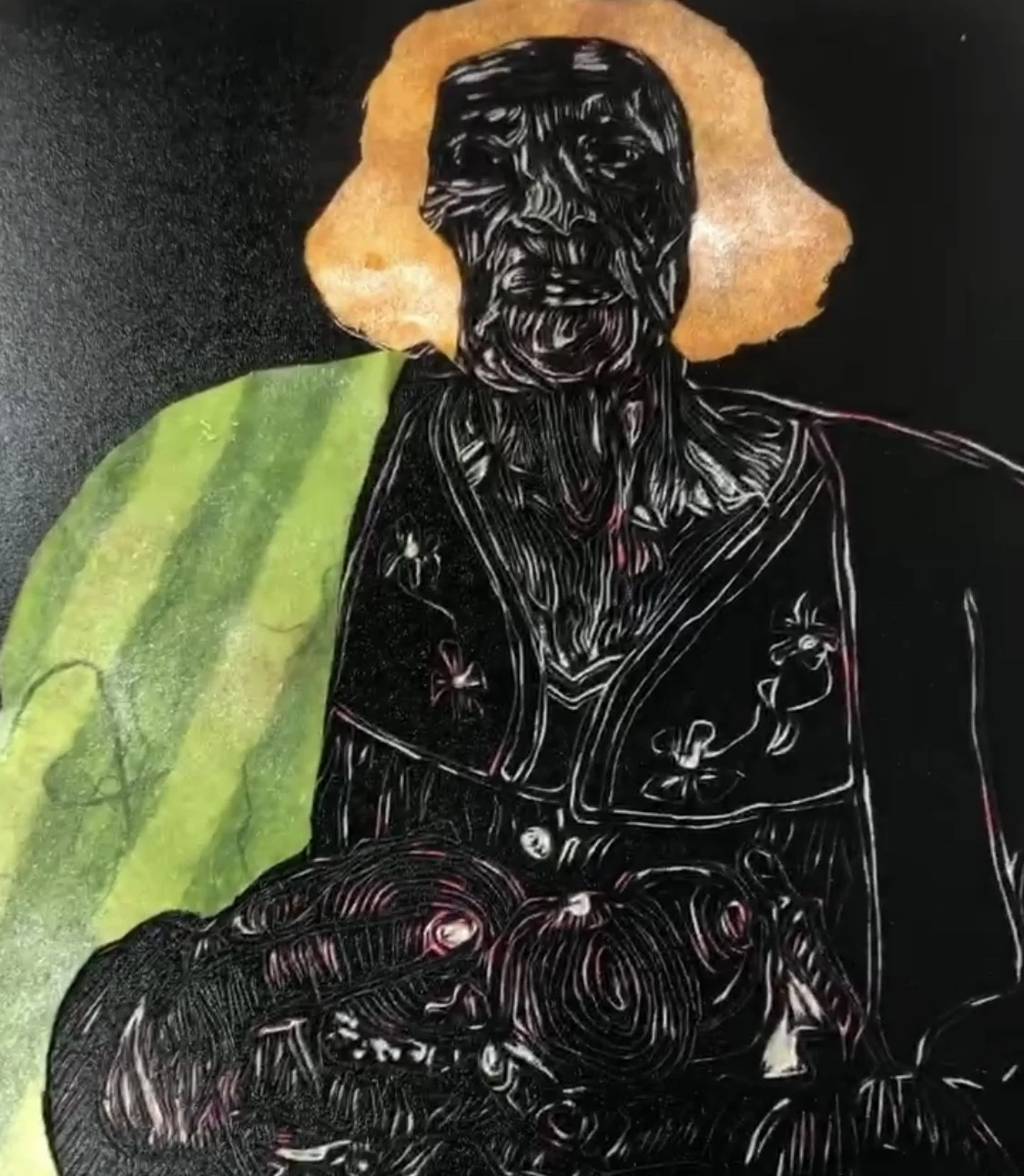 In February 2019 I began my journey into relief printing. A medium that never interest me but I decided to participate under the direction of master printer Victor Rosas at Self Help Graphics. Victor has also taught how to Chine-collié, a technique in printmaking, in which the image is transferred to a surface that is bonded to a heavier support in the printing process.